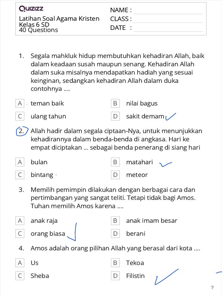 - Gunakan Pengetahuan Tambahan: Jika ada soal cerita atau uraian, ajak siswa untuk berpikir menggunakan pengetahuan agama yang sudah mereka miliki tentang nilai-nilai kebaikan, ajaran nabi, atau perintah Tuhan.